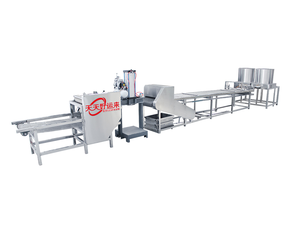 自動豆皮機(豆皮機、干豆腐、百頁、千張)生產線,是完成攪腦、潑腦、送料、折疊包布、以及壓皮、扒皮、卷包布等工序1-2人就可生產。大大的降低了勞動強度和提高了勞動功效。同時降低了成品生產成本。厚薄寬窄可調、口感勁道滑爽,完全和傳統生產的產品相媲美。本機特點:1、仿手工不改變手工的原色原味。2、占地面積小、操作簡單。3、用電量小,有220V和380V電源供選擇。4、分為90、100普通型和200、300標準型、400、600型工廠型、500仿手工適合做厚皮型。5,   便于清洗,使用壽命可到十年以上。